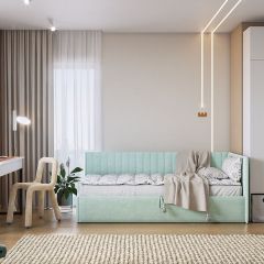 Цветовое решение: белое дерево/черный муар/мята (велюр)